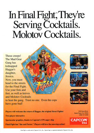 I do miss the simple days of video game ads when all you needed was a good slang term that the kids were using and a bunch of attitude. Cuz attitude was cool, dude. We’ve managed to dig up these classic Capcom magazine ads from the late 80sand early 90s for your enjoyment (larger, individual images after the break). Let us know which one of these tickles your fancy the most. My personal favorite? In Final Fight, they’re serving cocktails. Molotov cocktails!