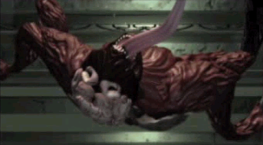 My next moment, well moments, are what I like to call the “horror scenes” in RE2. Now before you think, “but wait isn’t the whole game technically horror?” Arguably yes, but “horror scenes” sounds a lot nicer than “bad guys jumping out and scaring the crap out of me moments”. As I mentioned last time, I’ve been a fan of horror movies. Aside from all the monsters, blood, and brutal scenes found in your run of the mill horror; what I found most appealing was the shock factor from the ups and downs created by tension and relief. Some examples of this could be something unexpected surprising you or being relieved that you lost a pursuer only to turn back around and have this guy standing right in front of you.