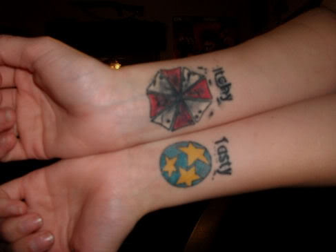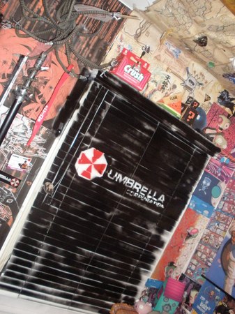 Resident Evil Fanatic #1: Tattoos, Shadowboxes (#1 is shown above, #2 here , and #3 here ), Costumes, Hand Made Pillows and Umbrella by Zombie