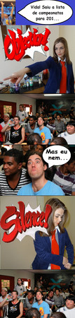 Chegamos à conclusão mítica do nosso concurso cultural “Phoenix Wright – OBJECTION!” O vencedor foi Michael Akira Locke, conhecido entre os jogadores de luta como “Comboman70” 😀 Michael não mandou só uma imagem, mas sim uma história que pode ser verdade na vida de muito marmanjo por aí. Confiram a seguir a tirinha na íntegra. Clique na imagem para ver em tamanho gigante 😀 Com isso, Michael ganha um Phoenix Wright: Ace Attorney – Dual Destines para curtir altos dramas judiciários no seu 3DS 😀 Menção honrosa também para Helder Peres, que nos enviou muitas imagens bacanas. Veja só algumas. Internet lenta? – “OBJECTION!” Pista intransitável, de tantos buracos? – “OBJECTION!” Enquanto isso, aproveite pra curtir Phoenix Wright: Ace Attorney – Dual Destines no seu Nintendo 3DS. Só 60 mangos, tá esperando o que? 😀