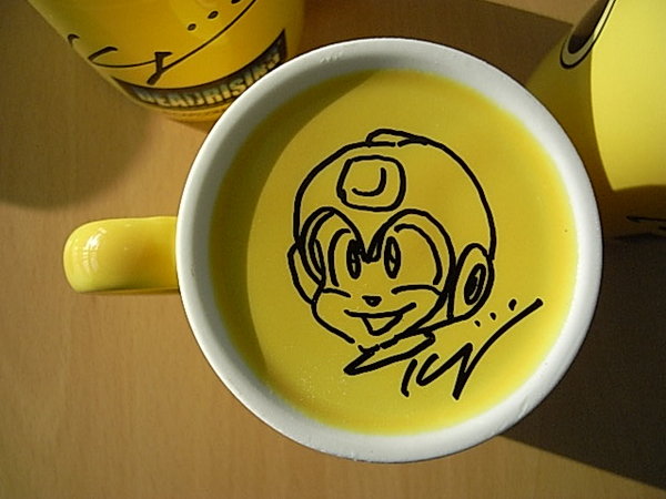The mugs come with Keiji Inafune’s autograph, and his other signature Mega Man drawing on the bottom. Hotness!