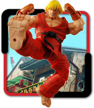 NECA is doing some awesome work for us lately, especially with SFIV. I’m sure you’ve seen Crimson Viper and Ryu already as part of the Collectors Editions. But new to the list is Ken! I have a few new pics to show of these detailed figures, and in some fancy poses too. You’ll be able to get these at Toys R Us, Amazon, FYE, Hot Topic, Spencer’s, and Comic Book & Specialty Shops everywhere, and will be available early next month. I wonder if we’ll see more characters from the SFIV line-up…?