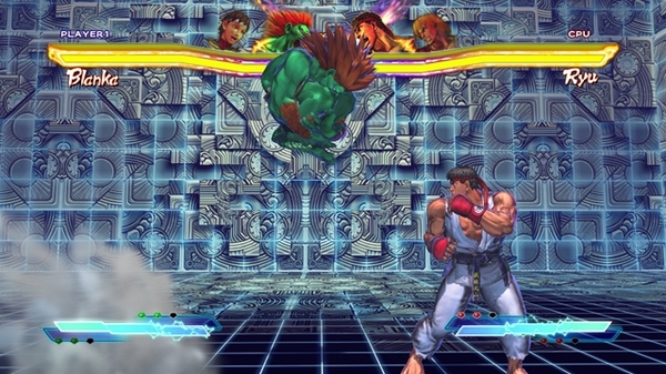 A variation of Rolling Attack, Blanka rolls diagonally upwards when he performs Vertical Roll. On startup, the EX version of the move is fully invincible.
