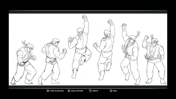 Characters – Learn more about the world-famous characters in the Street Fighter series, including their background, likes, dislikes, and even blood type. You can also look at frame-by-frame character sprites in each of their appearances!
