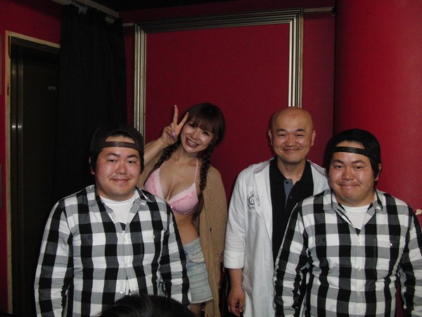 ↑During the recording, Meijin Takahashi suddenly showed up with the first round combatants, The Tacchi. We had a small photo shoot with Yuu Tejima to celebrate the occasion. I’ll have to admit, my eyes kind of wandered… somewhere… eep.