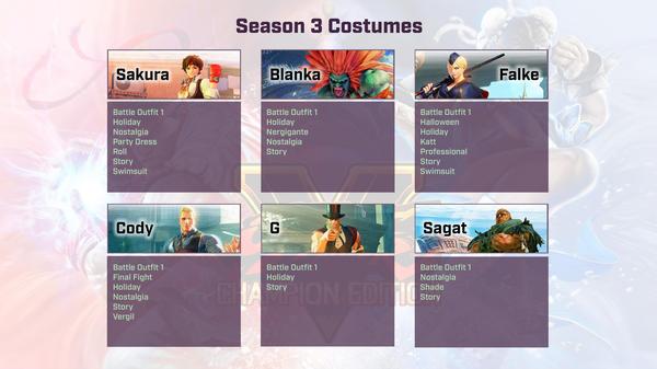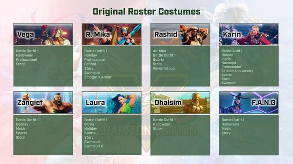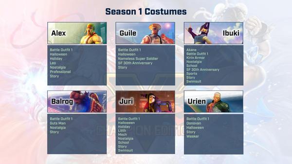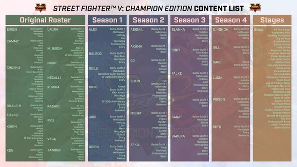 Street Fighter V: Champion Edition – Lista de Conteúdo
