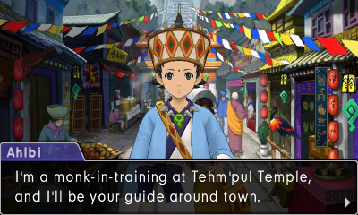 As a quick refresher, Spirit of Justice finds Phoenix far from home, traveling to the Kingdom of Khura’in, while Apollo Justice holds down the fort back home at the Wright Anything Agency. As a visitor in a distant land, Phoenix soon meets up with a local monk-in-training, Ahlbi Ur’gaid, who is also a highly dedicated tour guide for the area surrounding the kingdom.