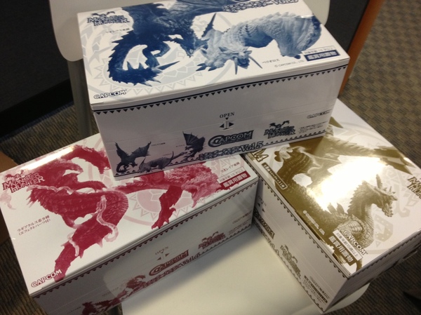 - You know what these mean, right? It means you get a random monster figure if you buy them. They’re coming straigt from Japan, and are pretty awesome. I have a Green Nargacuga that puts a smile in my face everyday here… =)