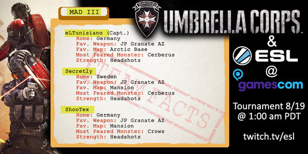 Update: Congratulationsto MAD III on their victory in the Umbrella Corps Gamescom Showdown!