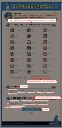 A note from my buddy Ucchy-san arrived in my inbox early this morning to let me know that he is currently running a poll to see which Mega Man characters fans would love to see get made into collectible figures. The poll is entirely in Japanese, but Ucchy-san (always thinking ahead) has provided the above image and the one after the break to help guide you through the process! Now this doesn’t guarantee that these will be made, but it may help Capcom Japan decide!