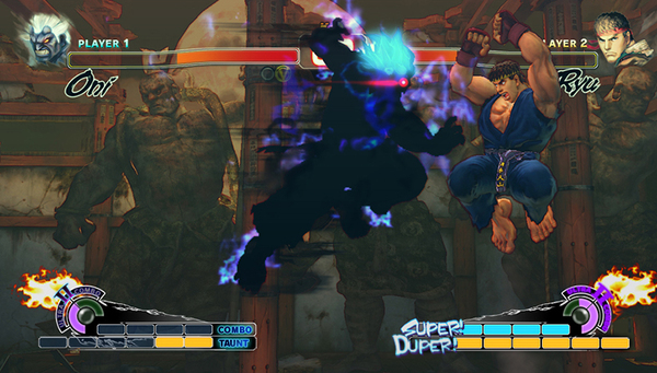 Introducing the Duper Meter. This will sit below the Super Meter and be easily identifiable with it’s Yellow color. With the Duper meter, Super moves can now take on the properties of EX Moves after their activation or be used to strengthen EX moves in general. The Duper Meter also builds 1.5 times faster than the normal Super Meter. Now players will get even more options to select from as we know Street Fighter 4 players love option selecting.