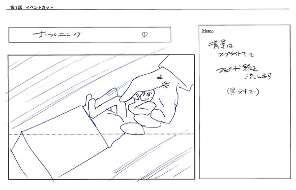 Janet: I want to go back to the story for a second. In the picture of the Episode 3 opening storyboard, I noticed that it’s actually labeled as the opening for Episode 2. Is there a reason for that? I assume this means that at some point you must’ve shuffled some of the story around?