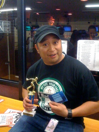 Here’s what went down: “QA’s ‘Third Strikers’ team bowled with style, led by Jordan with his ‘Shoryubowl’ and Marc went with ‘Hadobowl’ technique. There were a bunch of great scores, but producer Rey Jimenez lived up to his team name (‘Godhand’) and took the top score of the day with an incredible 209.”