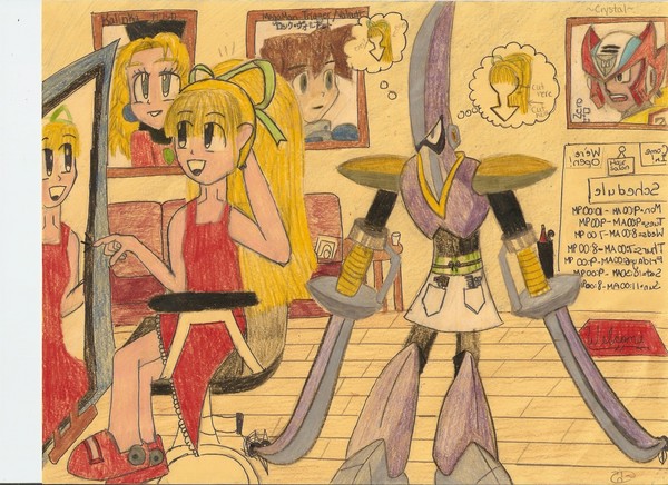 I like the juxtaposition of Roll and Blade Man: cute and serious. I didn’t miss the little detail that Blade Man is holding another pair of scissors in his blade hand