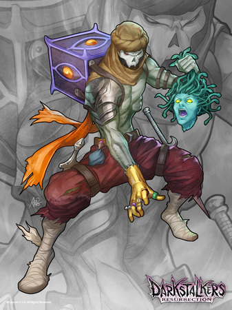 A while ago, we held a contest to create a new Darkstalker character. Much to our delight we had a quite the number of entrants to go through, with us landing on the winning character Relic . Although the initial artist’s original conception was crude, we all saw the potential in the character. As promised, Stan Lau made an “official” looking version of the character, which I do say does the character justice.
