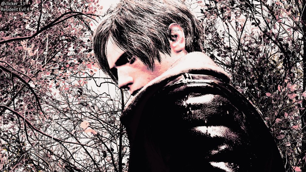 clicker_13 shows us a nice look of Leon turning back with the foliage of trees right behind him in Resident Evil 4.