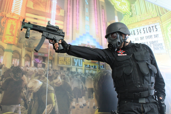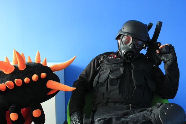 A few weeks back Richard Mumford dressed as Resi fan favourite Hunk burst out of the air vents and hurled tear gas at us untill we agreed to interview him. You can read his demands/answers and see more photos after the jump.