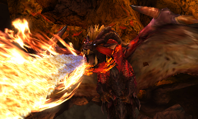 The Teostra has always been a very powerful monster, and with his time away since Monster Hunter Freedom Unite, he has learned a number of new tricks that make him even more terrifying! Most of his old attacks and abilities remained the same: the really wide and far-reaching flamethrower attack is still one his main moves; and he is still surrounded by extreme heat most of the time – burning any who approach him!