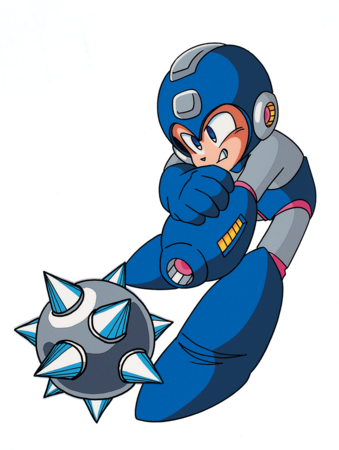 Knight Man, true to his name, is a chivalrous knight-bot who fights with a spiked flail. He also has a mohawk.