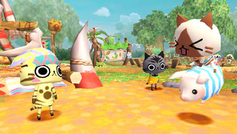Adding to the overall cuteness, Japanese players can also get Hello Kitty in the game. Those who purchase the game at launch get a promo code that enters them into a contest to win a Hello Kitty/Felyne plushie.