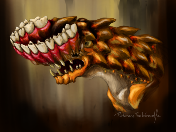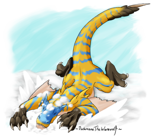 It feels rather wrong to mash together a fan-art of a hideous and creepy rendition of a Barroth with a cute little Tigrex playing in the snow… but hopefully that will get you to click the MORE button below and look for the art style that you like more – or just see more images of both styles.