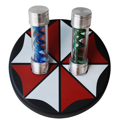 Each vial measures just over 5” long and is an accurate replica of this quintessential Resident Evil prop. Constructed from aluminum and Plexiglas, each vial has internal LED’s so that they can be independently illuminated.