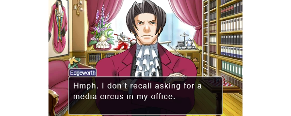 Host: Today, we’ll be talking with the fine folks of the Prosecutor’s Office. In fact, we here at “Great People Around Town” have been granted a very special interview with that up-and-coming prosecutor, Mr. Miles Edgeworth, himself!