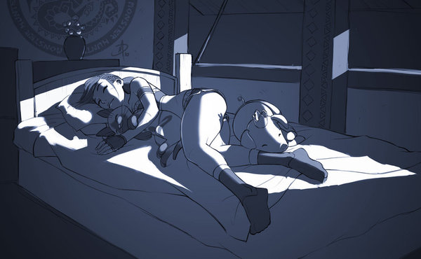 As you can see, the art is really great! And it’s one of the few artists I’ve seen that took time to portray scenes like snuggling the Poogie, signing up for a quest and even saving the game’s data (all made it to my list above, lol).