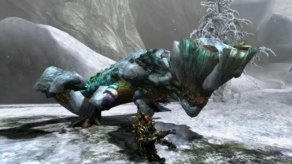 Now the subspecies Jade Barroth is here to torment you in the Tundra environment! So, on top of having to keep track of its unique plowing charge patterns, you will also have to focus on staying warm. By the time you reach this quest, you should know very well to always carry Hot Drinks when hunting in the Tundra, or equip yourself with an armor set that keeps you warm.
