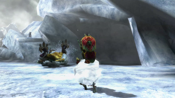 Also, keep in mind that the Jade Barroth can use its forehead to plow through the snow and even toss huge snowballs in your direction. And since it is usually covered in snow, it will often times try to shake some of it on you and get you snowed in. This will limit your mobility and prevent you from using any items. The only exception to this is the item that cleans the snow off of you: a Cleanser.