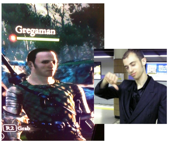 Bobby19877 went to the trouble of creating a character that looked like me, GregaMan. Frankly the last time I had that much hair is a faint memory, but it’s a pretty good likeness of me circa 2005, plus it’s better-dressed! Not bad considering Bobby didn’t have any photos for reference!