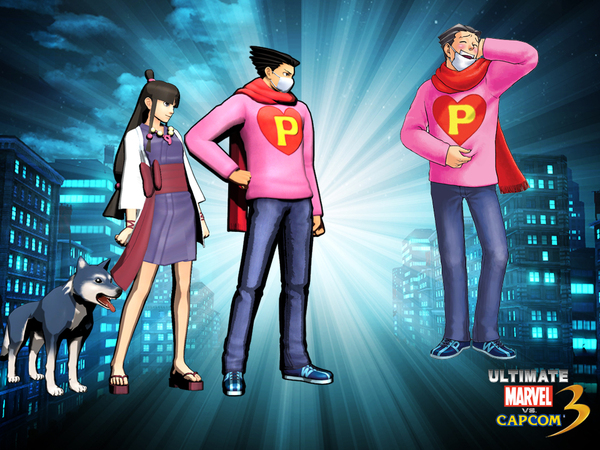 Lots happening in this one! Phoenix himself dons his university attire from Trials & Tribulations, but there’s an extra layer at work – if his voice is set to English, his shirt displays “P” and his shoes “W,” but if you change the voice to Japanese, it appropriate switches to “R” and “N”, reflecting his name in the original versions. Missile looks a bit like Amaterasu’s Talbain skin, and if the team had time, they would’ve liked to make Maya look more like her sister, Mia Fey.