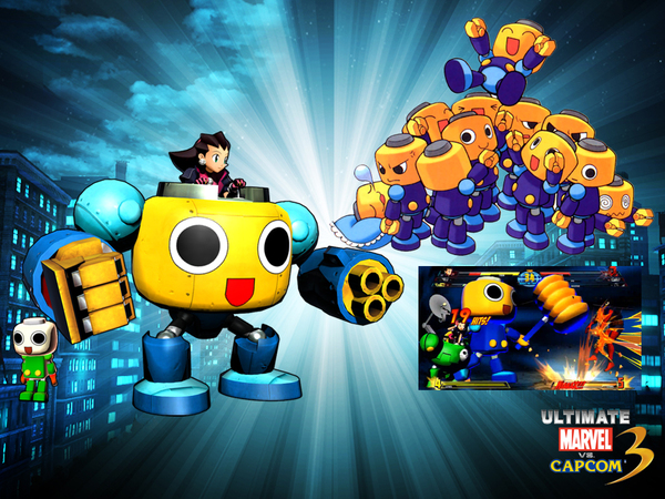 This is a brand new, UMvC3-exclusive look for both Tron and her trusty Gustaff, with the iconic Servbots as serving as inspiration. Notice how the silver trim up top has a space wide enough for Tron to stand up during certain moves. Another consideration was to make Tron look like Roll.
