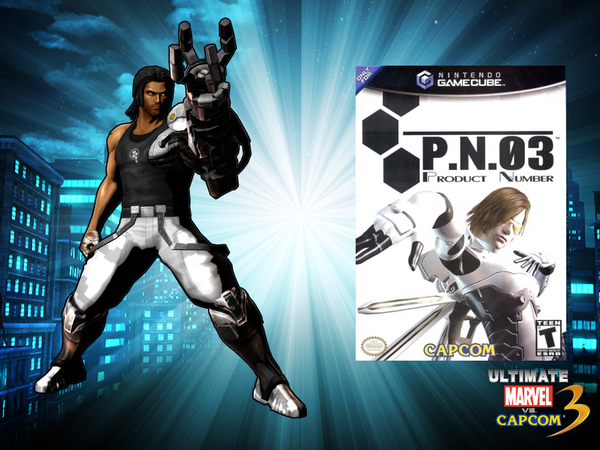 To rein it back in a bit from the 5P costume, we went with a more traditional look for the final choice. The word here is ‘clean’, and it’s essentially an inverse of the 3P design. We’re tagging it to P.N.03, mostly because we want you to go look that game up. It was part of the “Capcom Five”, along with Viewtiful Joe , RE4 , Dead Phoenix , and Killer7 .