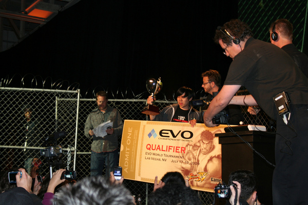 All 16 finalists automatically qualified into the EVO World Finals , but were battling for GameStop prizes, their very own Street Fighter IV arcade cabinet, and a chance to face the best in the world by representing the US in the International Exhibition.  The winner of the US tournament would move on to face 3 masters from the international scene, Poongko, the Korean National Champion, Iyo, the Japanese National Champion, and legendary Street Fighter Daigo Umehara.
